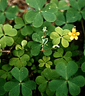 特徴・北海道を除く、全国の山野によく見られる多年草・1cm位の黄色いの五弁の花が咲き、種は弾けて2m以 上も飛ぶ。葉の一方が欠けて見えるので片葉身(かたばみ)と呼ばれる所以。葉は酸味があり蓚酸を含んでる。生花としても大変親しまれている。