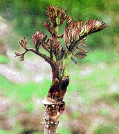 採取・3月になると木のてっぺんに若芽が膨らみはじめ、結構群生しているので見つけやすい。採取するときは棘に注意する。