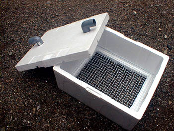 材料は、スーパーなどにある発泡スチロール、水道用接続器具、金網。