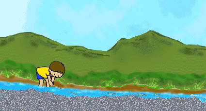餌は、川の石に張り付いてる、川虫「ヒラタカゲロウ」「黒川虫」。 竿先にブルルンと来たら上げれば釣れています。 深いところは危ないので、サラサラ流れているところで、そこが好ポイント。 一人でやらずにお父さんと一緒に挑戦しよう。